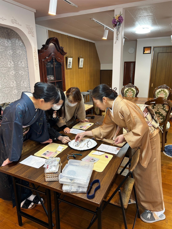 毎月、帯飾り作りや和菓子作り、着物で散歩など様々なワークショップをご用意していますので、ぜひ気になったワークショップに参加してみてください。